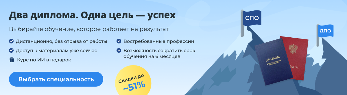 С каждой специальностью вы можете пройти бесплатную программу профпереподготовки и сразу получить два диплома