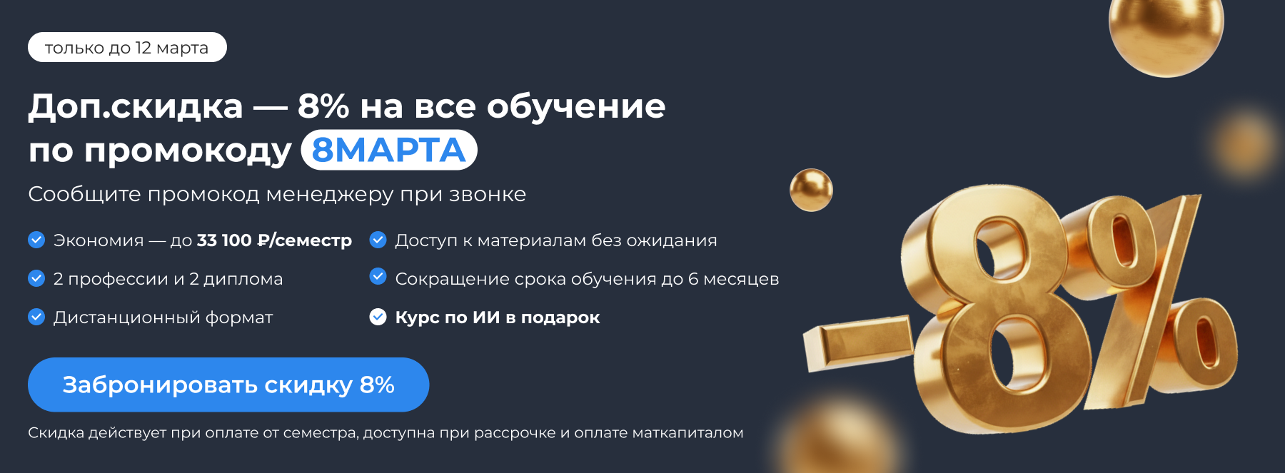 Доп.скидка -8% на все обучение! Только до 12 марта!
